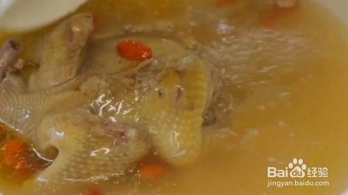 将鸽子处理好后,和辅料与调味料一起放入砂锅中炖煮,中途加入枸杞和食盐后即可盛出食用。