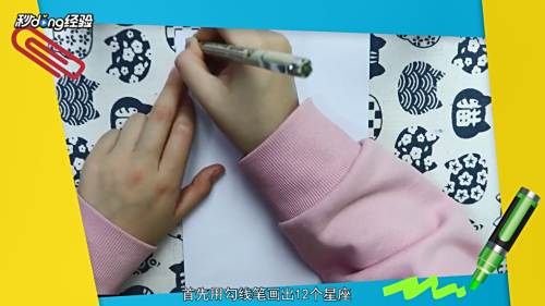 1用勾线笔画出12个星座。