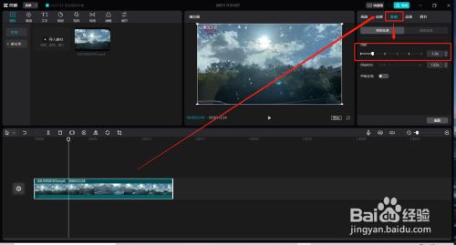 第3步、我们选中下方的视频素材后,点击右上角的功能中的“变速”,然后按照需要拖动倍数,就可以完成啦。最后保存视频即可。