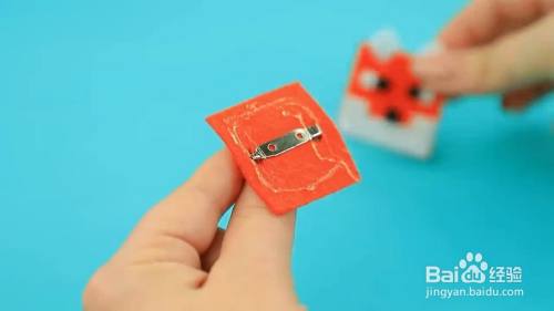 紧接着我们把它们组装到一起,然后把我们的胸针粘到另一边毛毡上面。