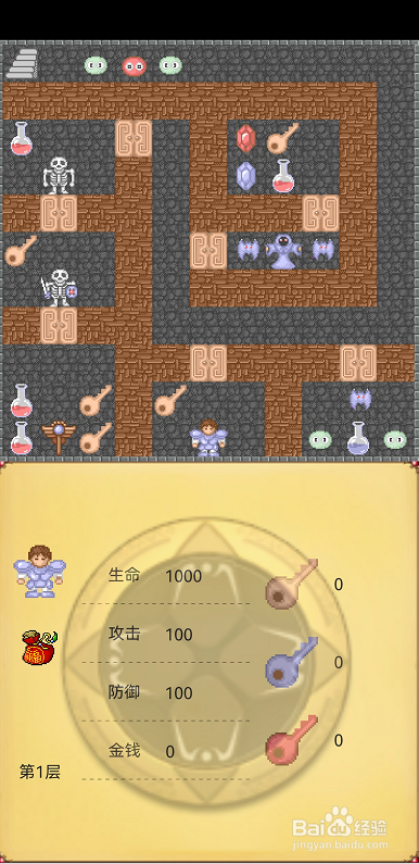 在通往更上一层的楼梯时根据自身属性去攻击遇到的敌人,并获得相应奖励