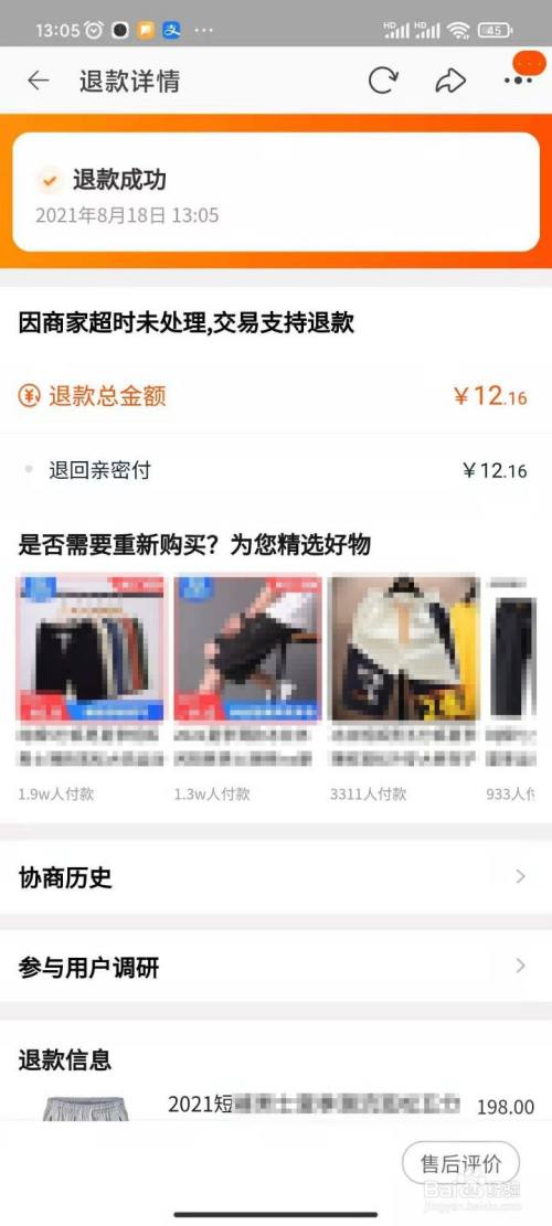 在买家已付款页面上,点击“退款”按钮。【下方如图所示】