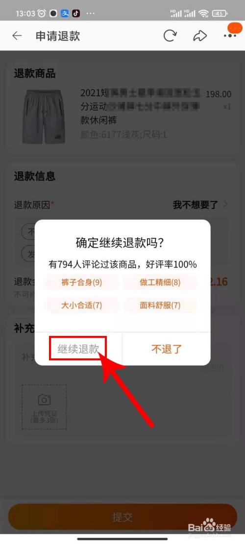 在弹出的悬浮框里,我们选择点击“继续退款”按钮。【下方如图所示】