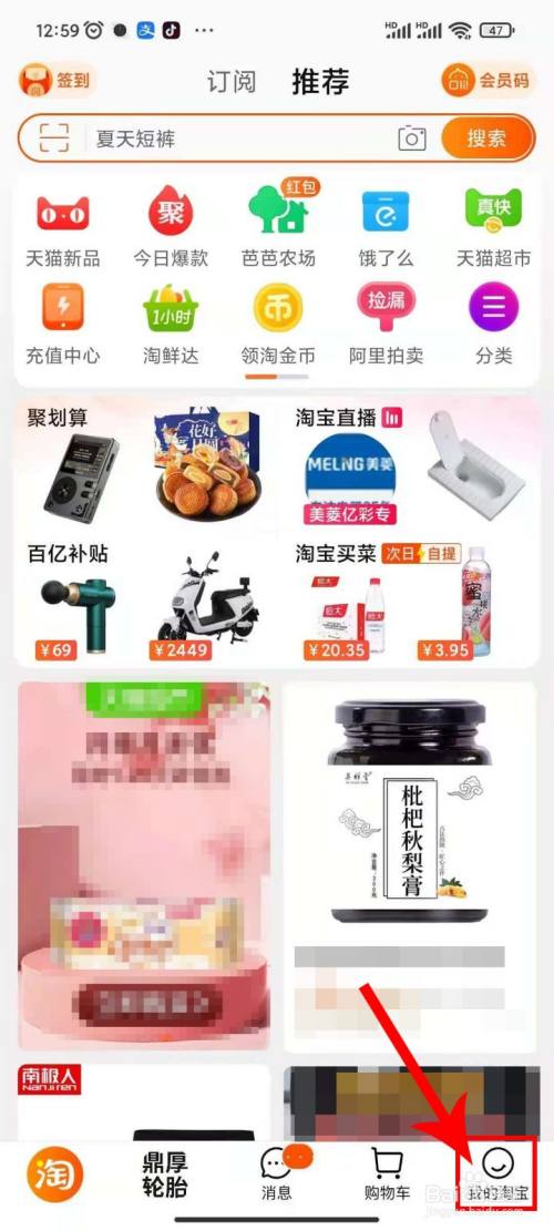 进入我们的淘宝后,在页面右下角点击“我的淘宝”项。【下方如图所示】