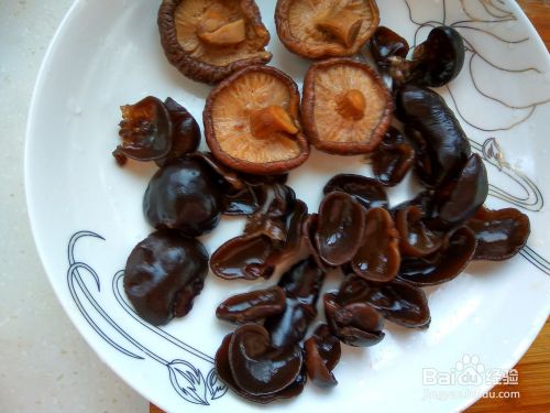 将木耳、香菇,提前1小时用温水泡在碗中,泡开后,将它们揉洗干净。待用。将青椒和豆角也洗干净空水。将葱姜蒜均剥好,冲洗干净。