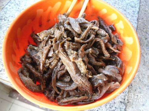 4把蒸制好的茄子干加料酒、胡椒粉、少许盐拌匀入味