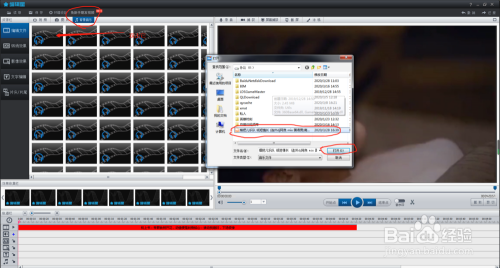 二、选中视频素材框中的视频文件,按住鼠标左键不松手将它拖动到下方的编辑栏中