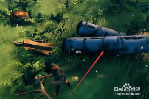 进入到游戏中,预先砍倒一棵大树,如下图所示: