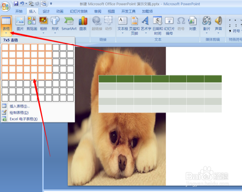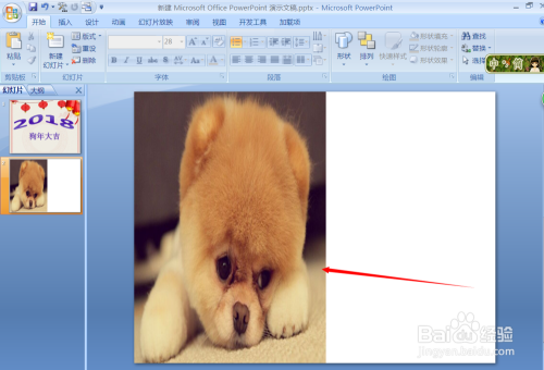 先新建一页幻灯片,插入自己喜欢的小狗图片,移动到左半边。