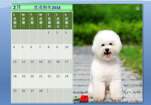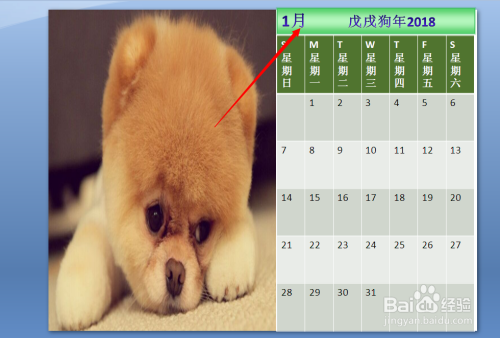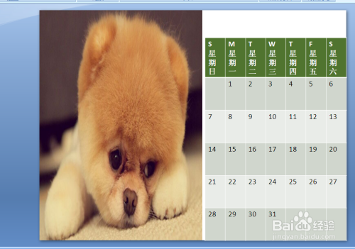 日历封面做好啦。(大家可以根据自己的喜欢插入一些小狗的图片或追加文字等。)