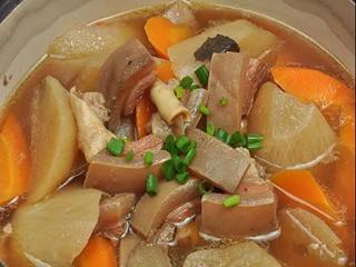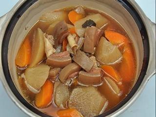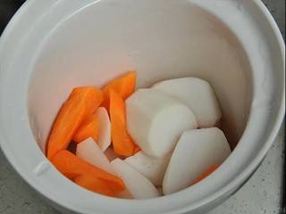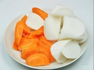 锅内倒入食用油,加热,放入牛腩,小火,炒香,白萝卜和胡萝卜铺在砂锅内,倒入牛腩和清水,大火,煮沸,转小火,炖至熟烂。