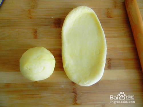 把面剂子简单团圆,每个面团先擀成长的椭圆形