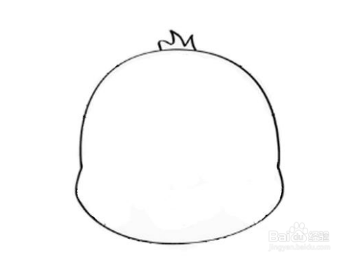 先画一个像柿子一样圆扁的老虎脑袋,老虎的腮帮要鼓一些,要注意左右对称。