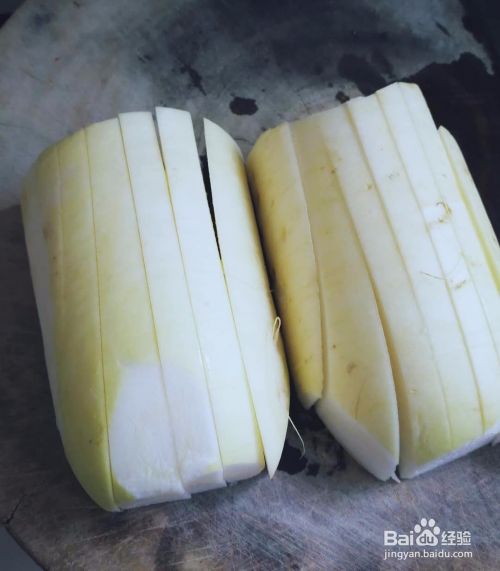 晾干后先纵向切成大块。