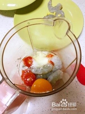 将蒸熟的胡萝卜,虾肉,淀粉,鸡蛋放入辅食机中搅拌成泥。
