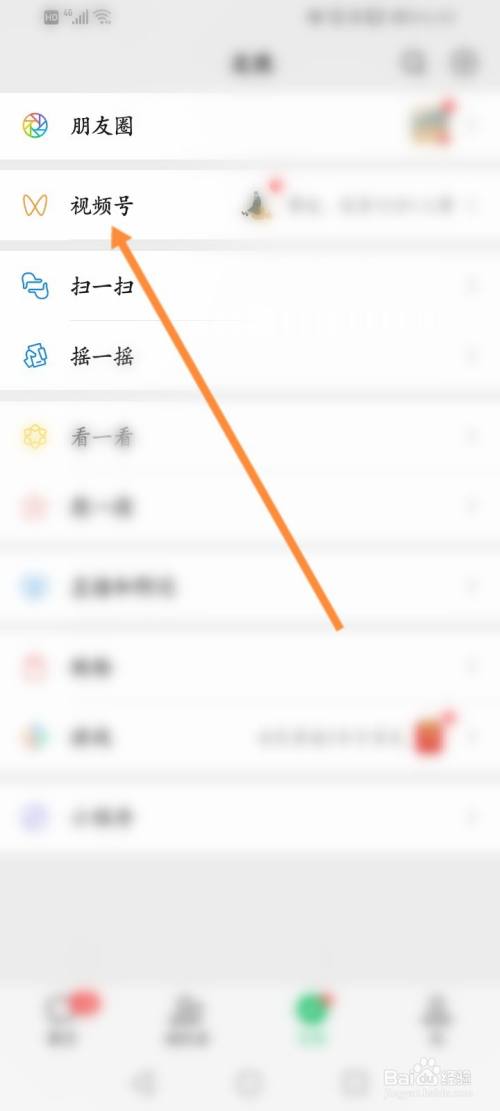 然后点击视频号。