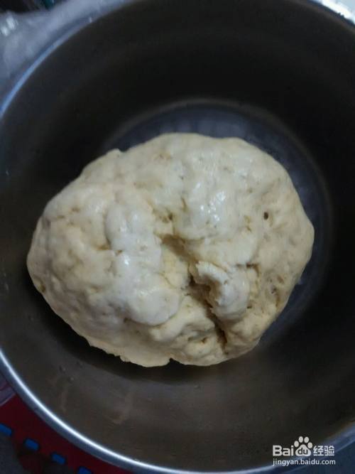 将所有材料倒无油的盆里,揉成三光面团。酵母不要直接跟糖盐接触。我是在面粉里挖个洞倒进去的。牛奶慢慢加。