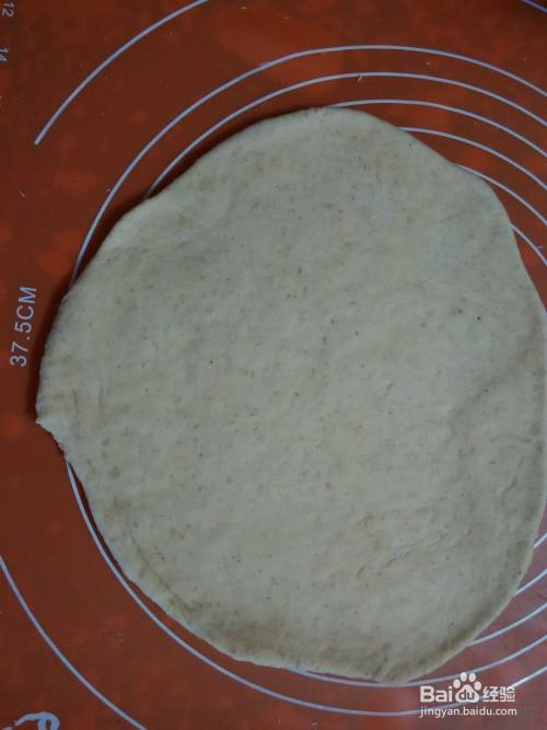 揉好的面团盖保鲜膜放冰箱冷藏发酵,这是6小时候的样子,做前拿出来回温!大了1.5-2倍。用手掰开有蜂窝状就好了!全麦面团看起来稍干了。