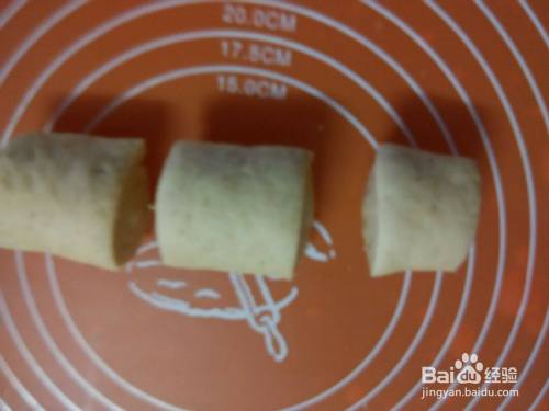 排气后分成三个这样的等分,盖上湿布,醒10分钟左右,面团拿起来轻了,松软。