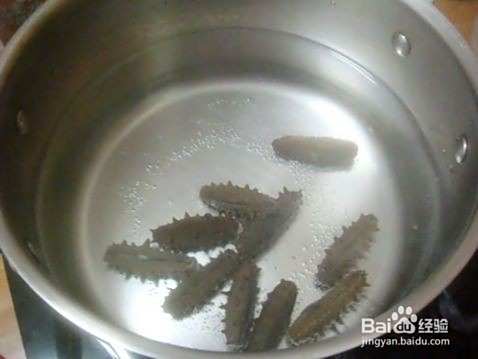 锅里放足量水烧开,放入海参,转小火煮30到60分钟左右,看到海参变大软和了就煮好了。