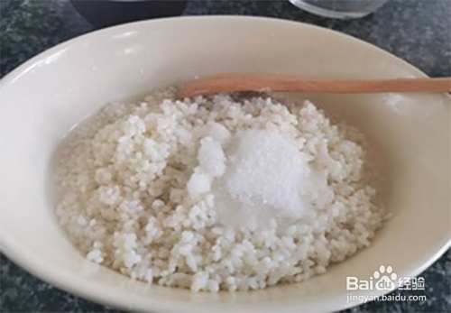 糯米提前用水浸泡三小时以上。控干水分加入十克细砂糖拌均匀。