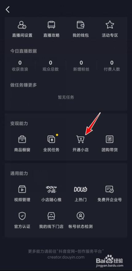 点击变现能力中的开通小店。