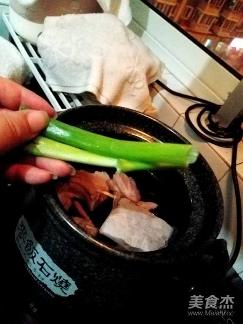 8留少许葱绿,其余全部放入砂煲。
