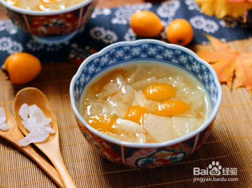 这道汤水中,雪梨清喉降火,保护嗓子;银耳滋阴润肺;枇杷润肺止咳;百合去秋燥,润肺止咳。几道食材功效叠加,发挥1+1大于2的效果,加入冰糖后,口感和味道更佳,老幼皆宜。