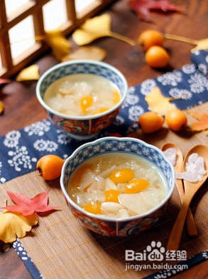 待梨块变成半透明,最后加入枇杷果肉,大火煮8分钟,把汤汁收成2碗,盛出即可。