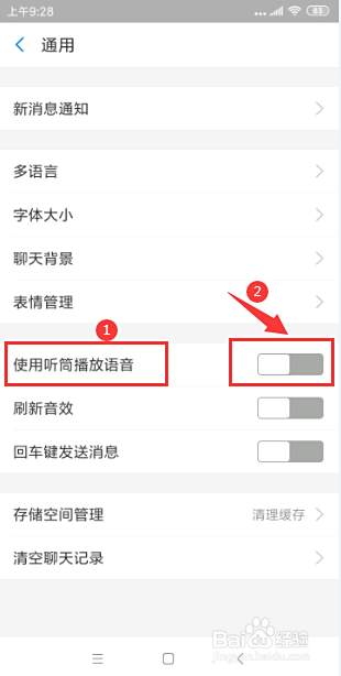 最后,在通用界面,滑动下方“使用听筒播放语音”旁边开关按钮,打开开关即可。