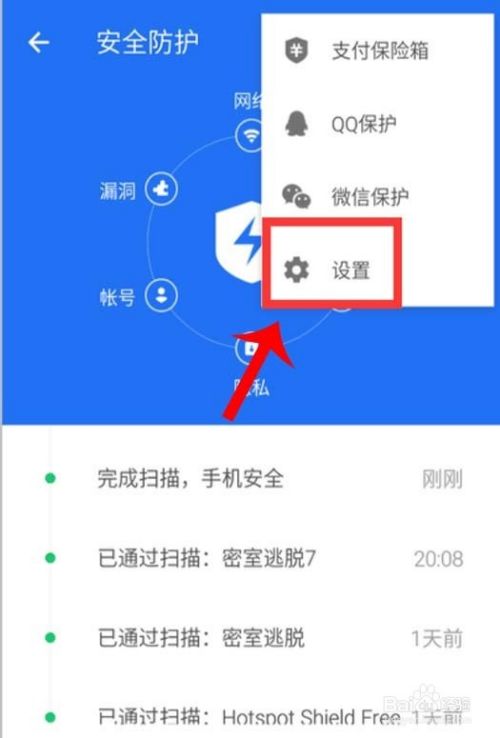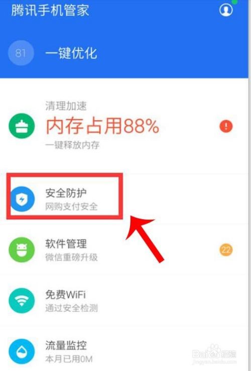 ①:打开【手机管家】点击【安全防护】