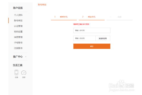 确认之后,跳转到“绑定手机”处,此时需要输入新的手机号进行绑定,否则的话是无法完成解绑操作的。