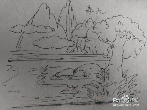 春天到了,今天和大家分享想一下手绘春天景色的简笔画过程。