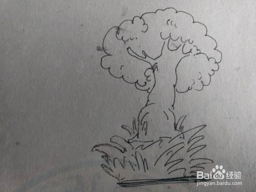 第三步画出大树前面的草丛的形状。
