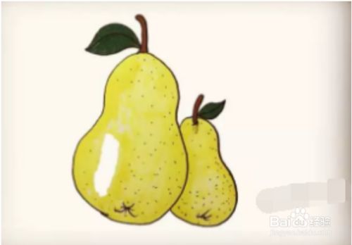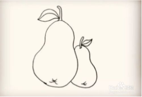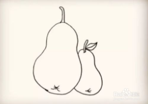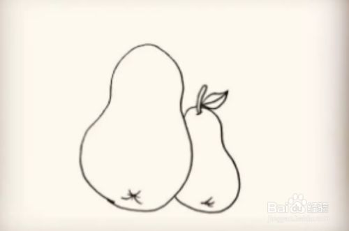 在旁边画好一个小一点的梨子,顶端留出一个缺口。