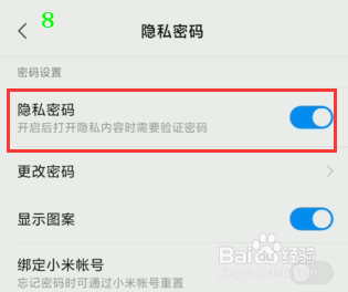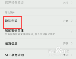 进入之后我们需要先对隐私密码进行开启,点击开启的开关。