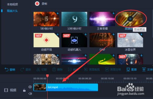 2、选择下载片头,拖动到视频轨道里