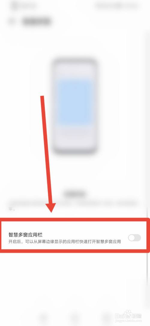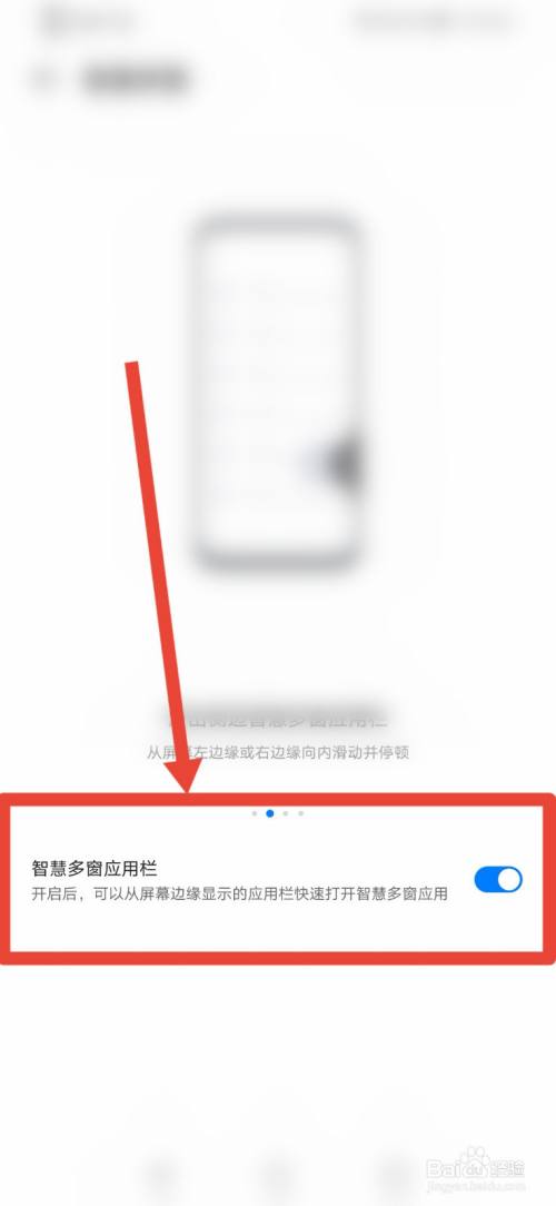 这里我们将智慧多窗应用栏功能打开,这样就设置完成了。