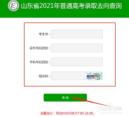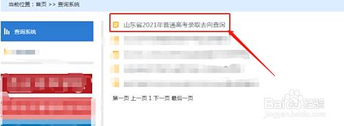 第三步:跳转到查询系统以后,点击第一项“山东省2021年普通高考录取去向查询”。