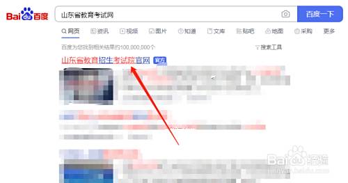 第一步:打开电脑浏览器搜索“山东省教育考试网”,点击图示官网进入。