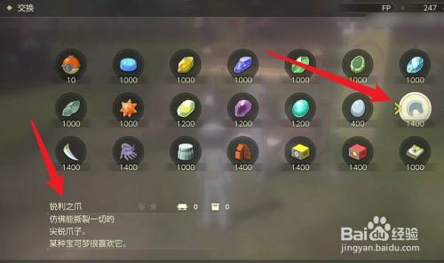 在交换界面,可以花费1400FP兑换锐利之爪。