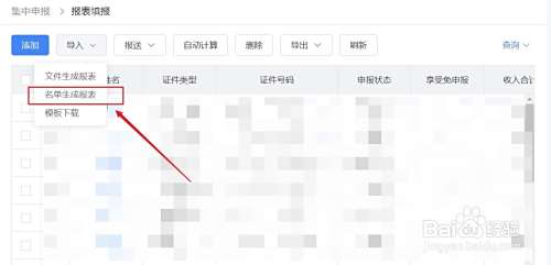 选择“导入”,点击“名单生成报表”,导入上述保存的Excel文件。