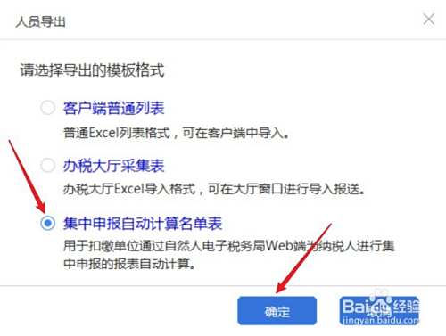 选择“导出”,点击“集中申报自动计算名单表”,生成并保存Excel文件。
