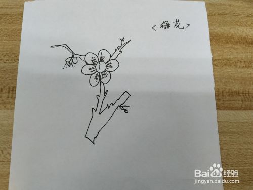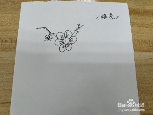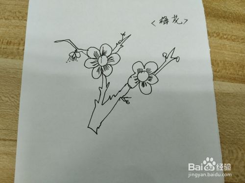 画梅花开叉的枝干和另一骨朵梅花。如下图