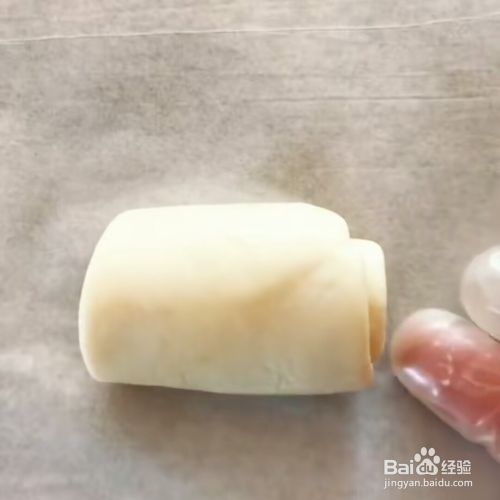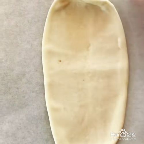 取一个包好的面团,压扁,搓成长条,从上往下卷起来。重复做两次。