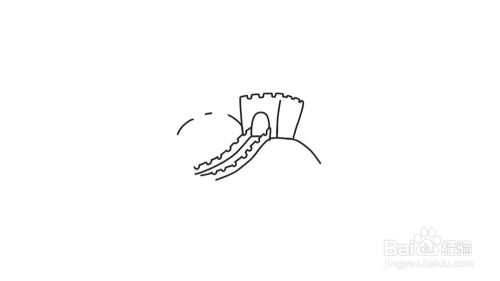 画出一小段城墙,位置靠左下,上面也要呈锯齿状。