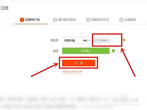 4.输入手机号码,用鼠标左键,按住滑块拖到最右边完成【验证通过】选择【下一步】。