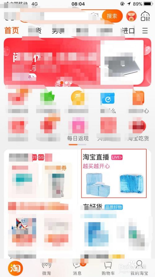 手机下载手机淘宝,已经下载的必须更新到淘宝最新版本,打开淘宝首页,点击直播。