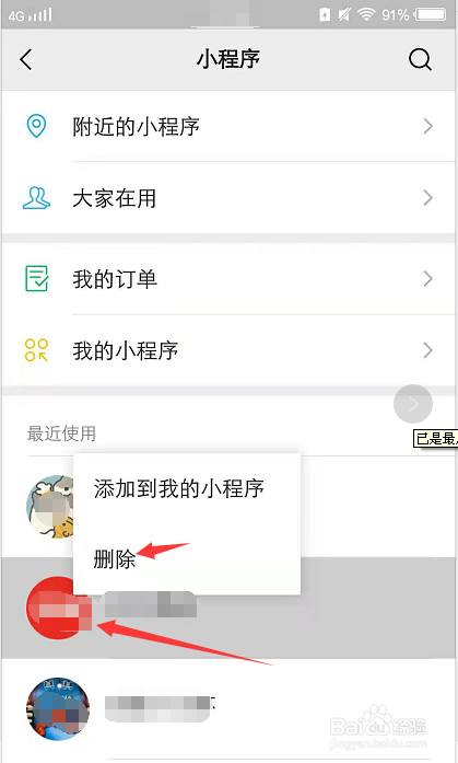 删除程序时,在【最近使用】里更方便找到你所使用的小程序,点击要删除的,点击【删除】就可以了。