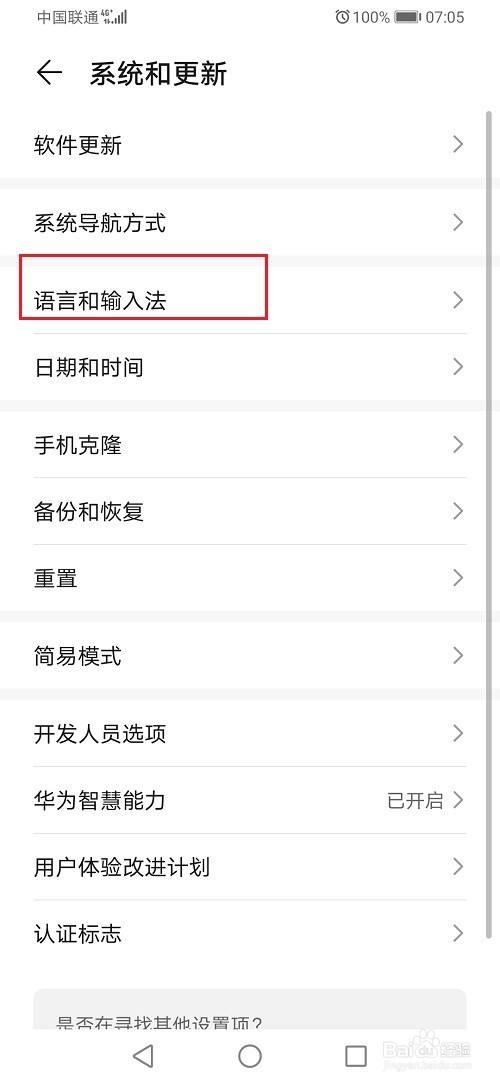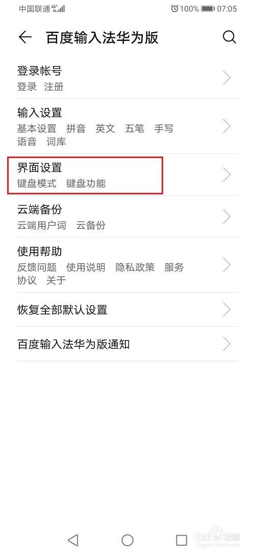 第三步进去语言和输入法之后,选择百度输入法华为版,然后点击界面设置